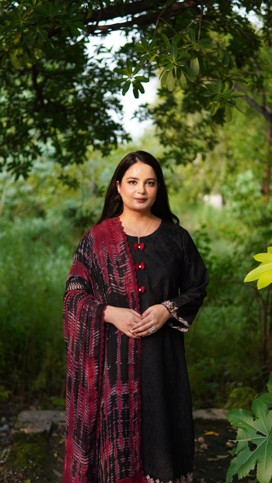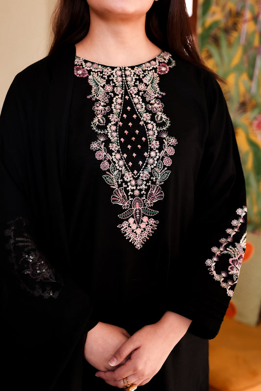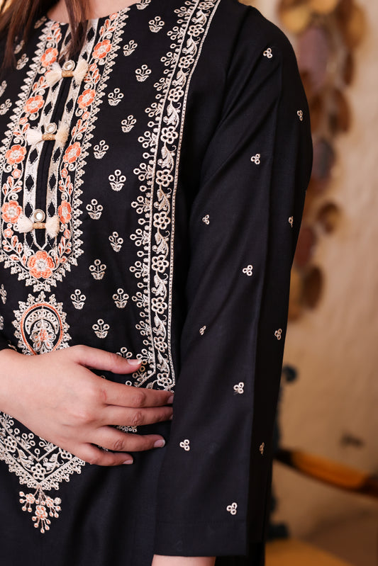 2-Piece Black Embroidered Khaddar Stitched Suit