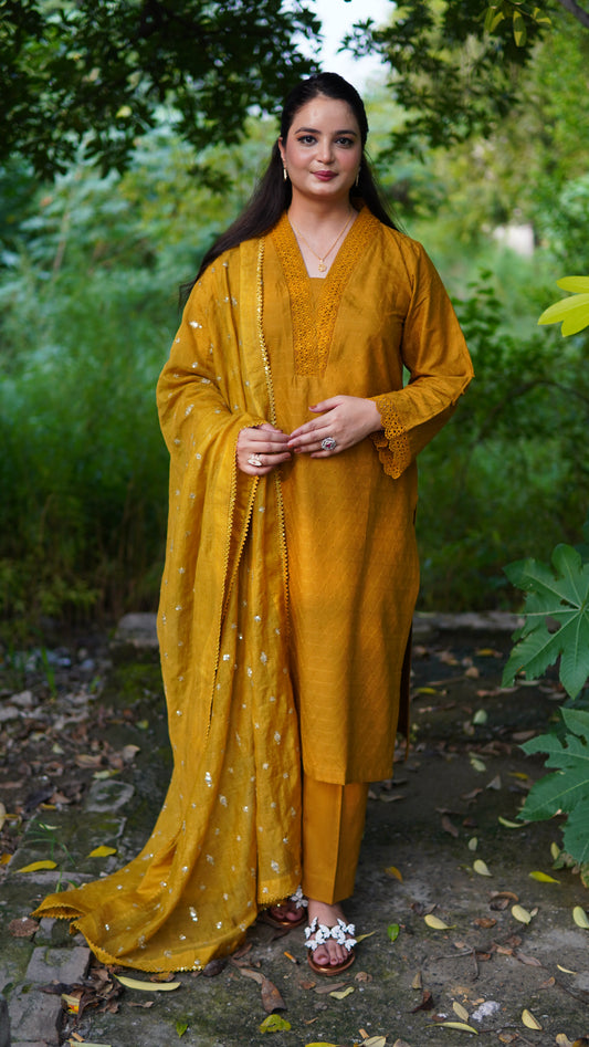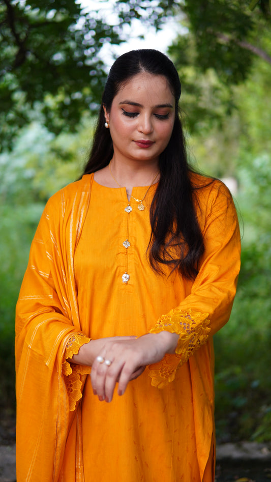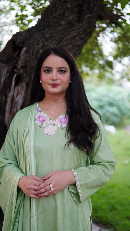 Premium Jacquard Lawn 3-Piece Stitched | Laces & Handmade Tassels