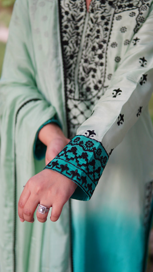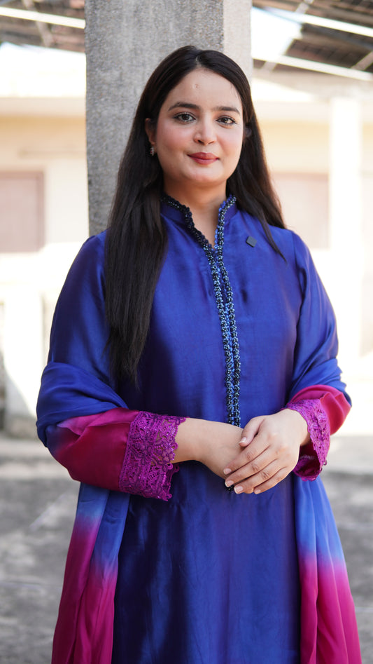 Ombre Sheesha Silk Long Shirt – Stitched 3-Piece Dress (Premium Ethnic Wear)