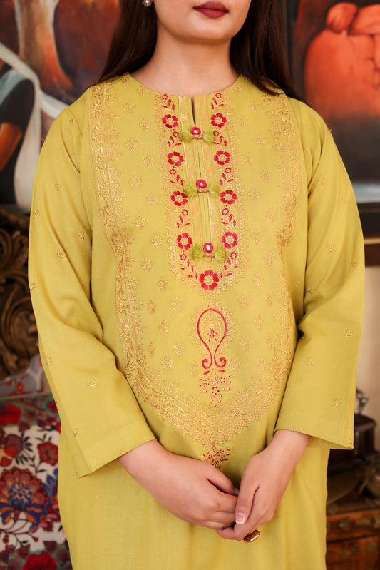 2-Piece Green Embroidered Khaddar Stitched Suit