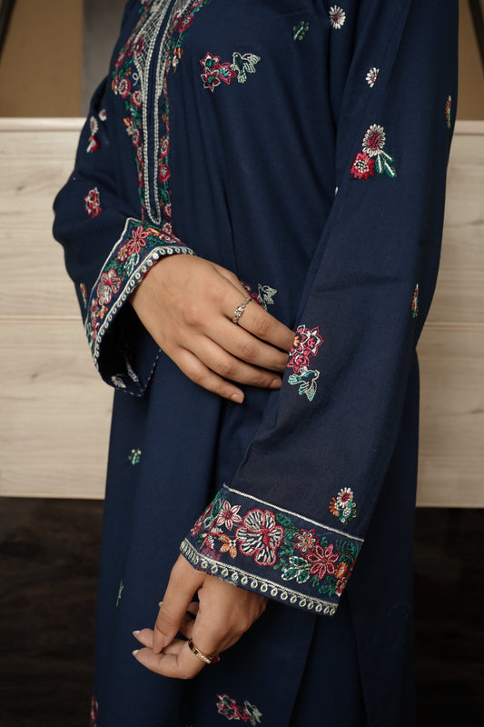 3-Piece Blue Suit with Multi-Color Thread & Sequin Embroidery and Khadi Net Dupatta